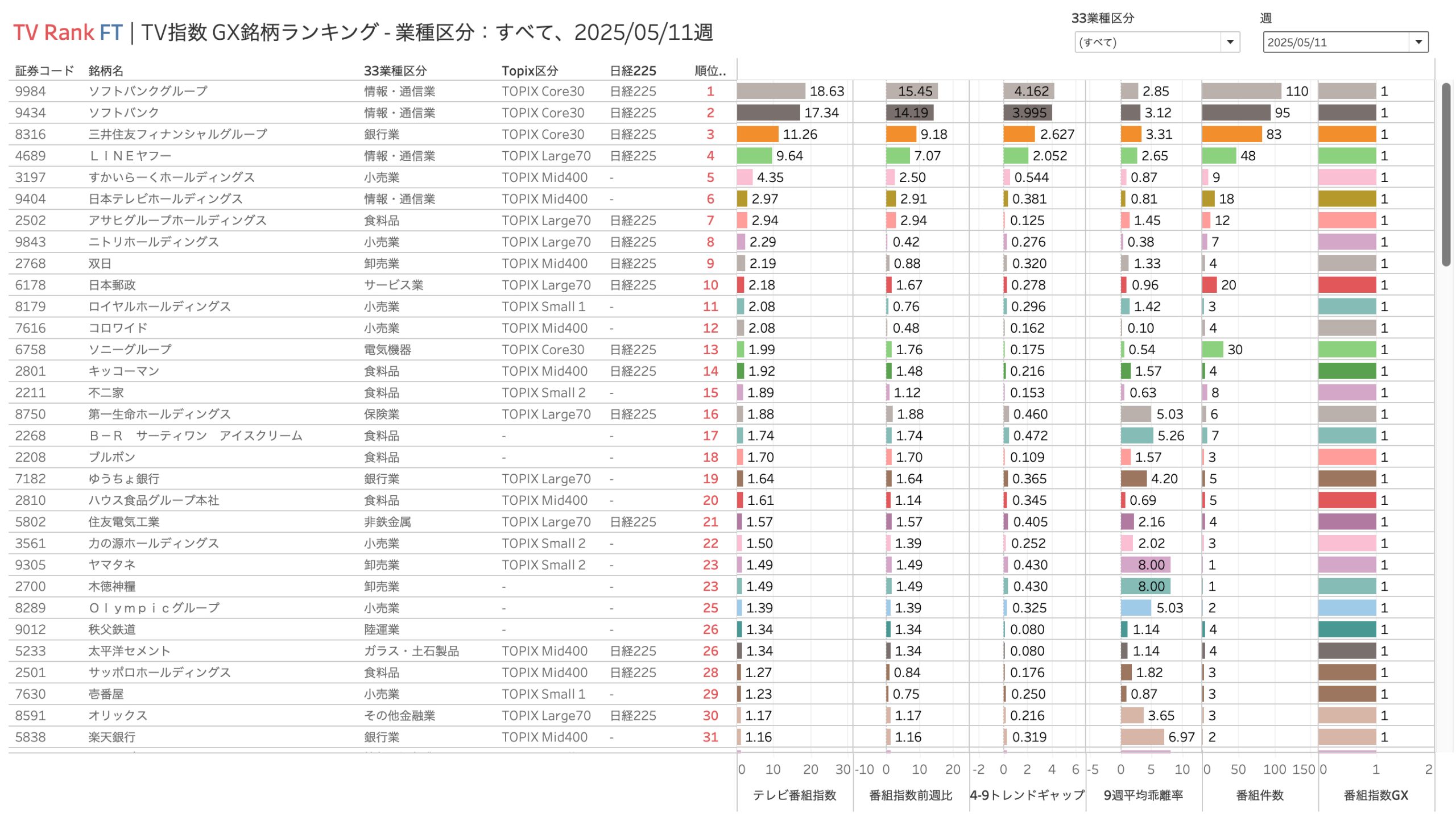 図1は、2025年5月11日週の「TV指数 GX銘柄ランキング」である。