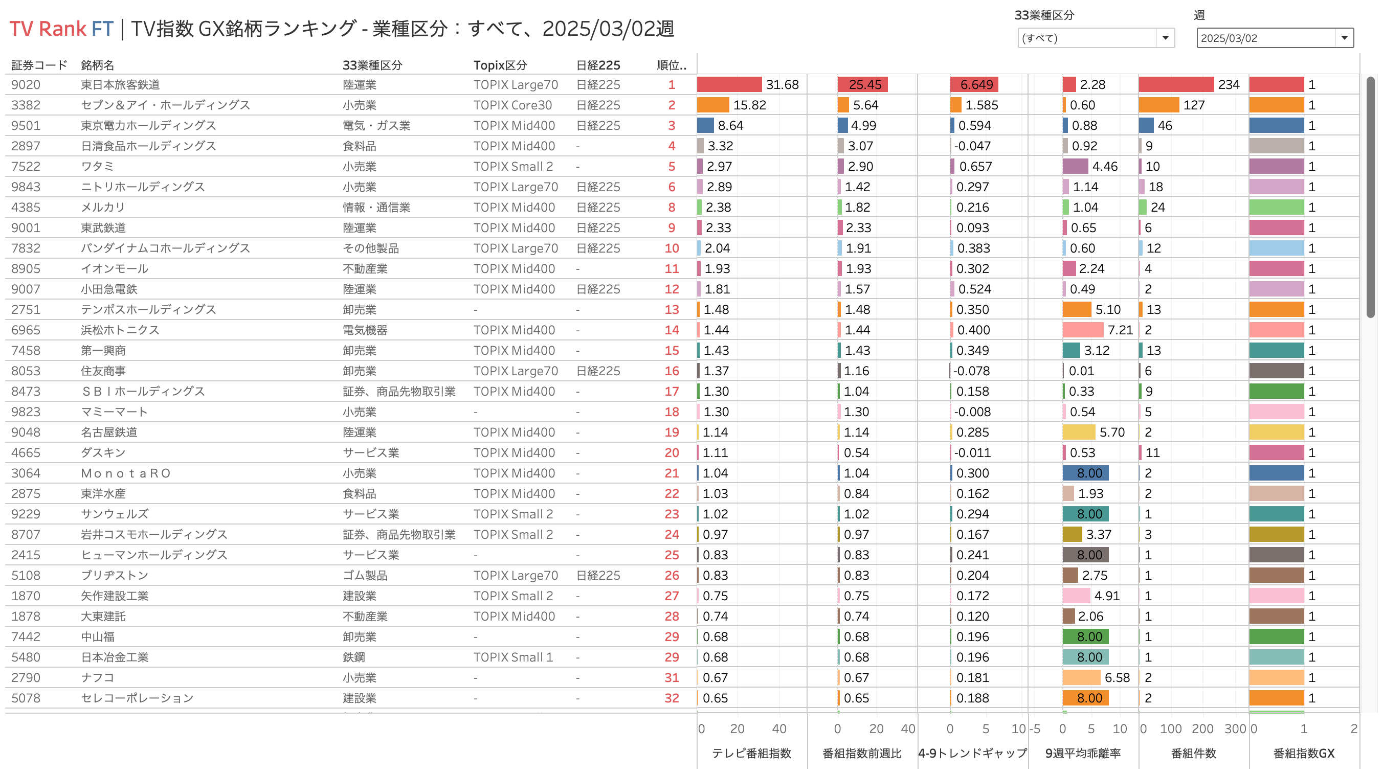 図1は、2025年3月2日週の「TV指数 GX銘柄ランキング」である。