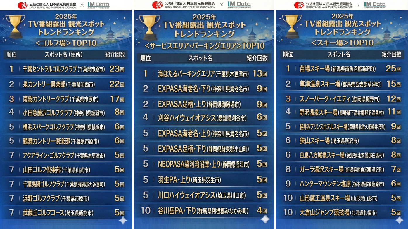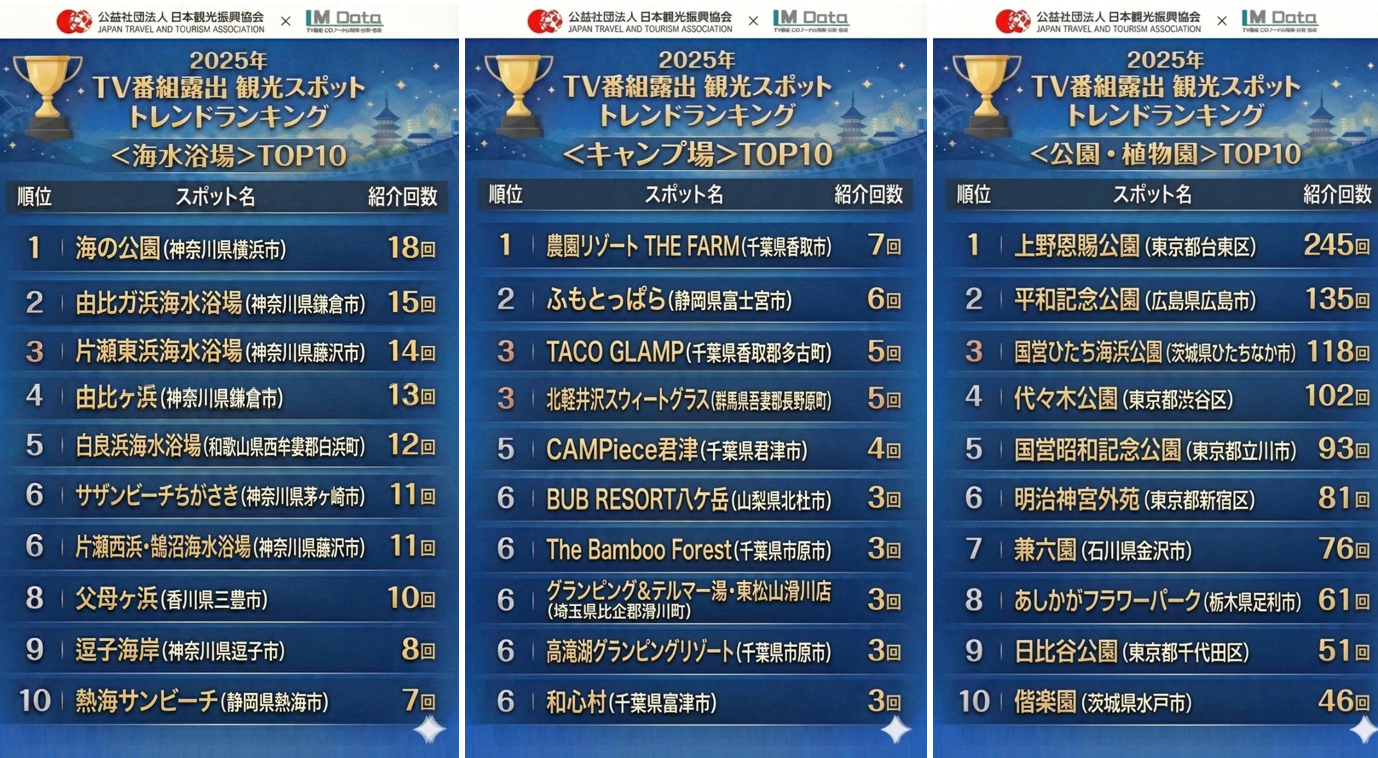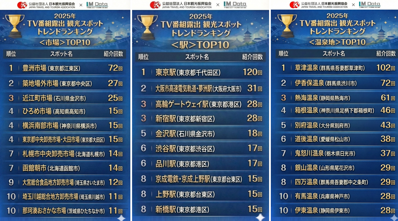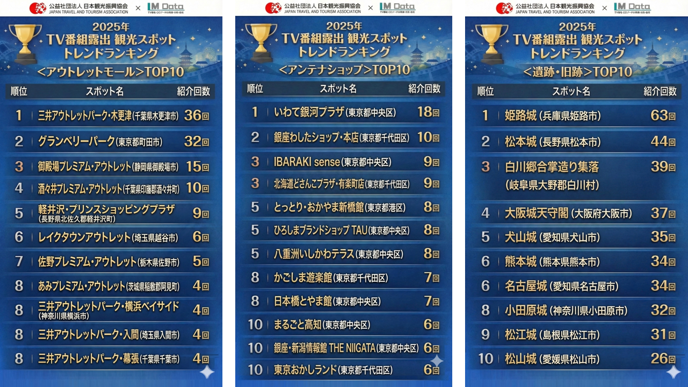 エム・データ × 公益社団法人 日本観光振興協会「2025年 TV番組露出 観光スポット トレンドランキング(MBT)」発表